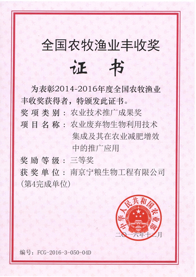 南京寧糧生物工程有限公司(以下簡稱“公司”)是專業(yè)從事農(nóng)用微生物菌劑、有機(類)肥料、復合微生物肥料、水溶肥料、土壤調(diào)理劑、重金屬葉面阻控劑等產(chǎn)品的研發(fā)、生產(chǎn)、銷售和服務的高新技術企業(yè)。公司占地200余畝。 公司擁有先進的生產(chǎn)、檢測設備與管理規(guī)范的生產(chǎn)基地。與南京農(nóng)業(yè)大學、江蘇省農(nóng)業(yè)科學院、中科院南京土壤研究所等科研院校建立了緊密的產(chǎn)學研合作關系,在南京農(nóng)業(yè)大學和江蘇省農(nóng)科院設有“寧糧”獎學金、獎教金和獎勵基金;擁有多個研發(fā)平臺并建有江蘇省研究生工作站;聘請了多位科研院校的教授專家為公司的技術顧問和技術指導。公司現(xiàn)已是中國有機(類)肥料生產(chǎn)技術創(chuàng)新戰(zhàn)略聯(lián)盟核心企業(yè)、江蘇高校協(xié)同創(chuàng)新中心有機固...